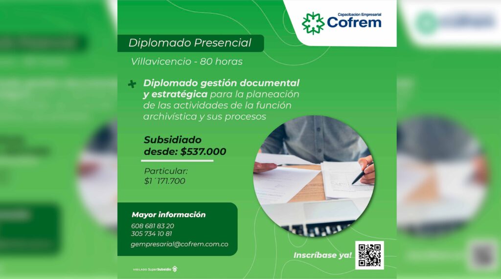 Capacitación Empresarial Cofrem invita a tomar parte en Villavicencio, de manera presencial, en el Diplomado Gestión Documental y Estratégica para...