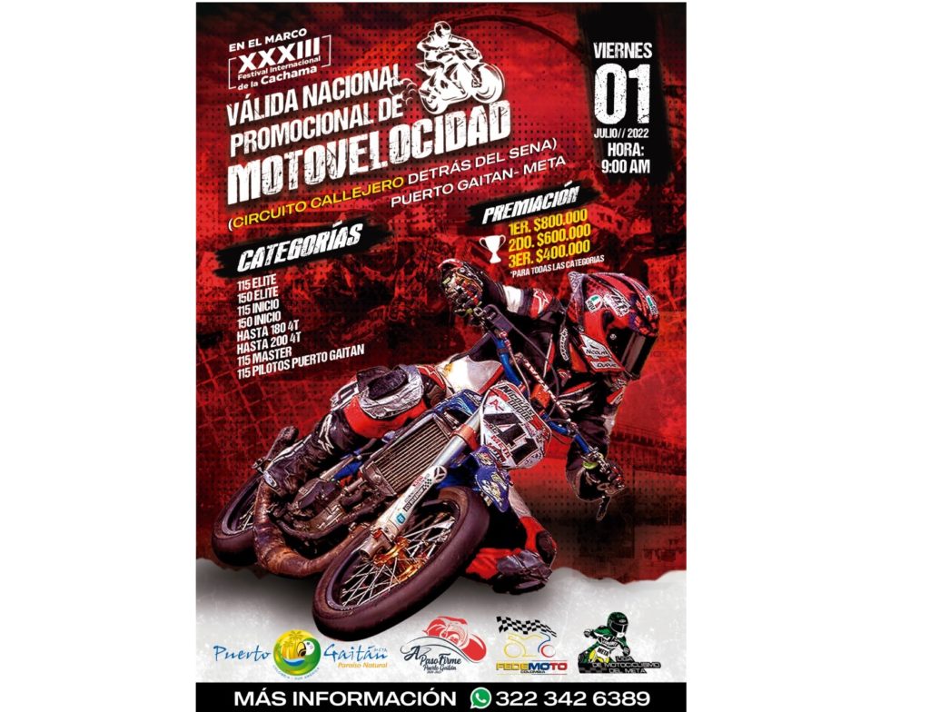 La administración municipal confirmó la realización de la Válida Nacional Promocional de Motovelocidad en el municipio Puerto Gaitán, que se...