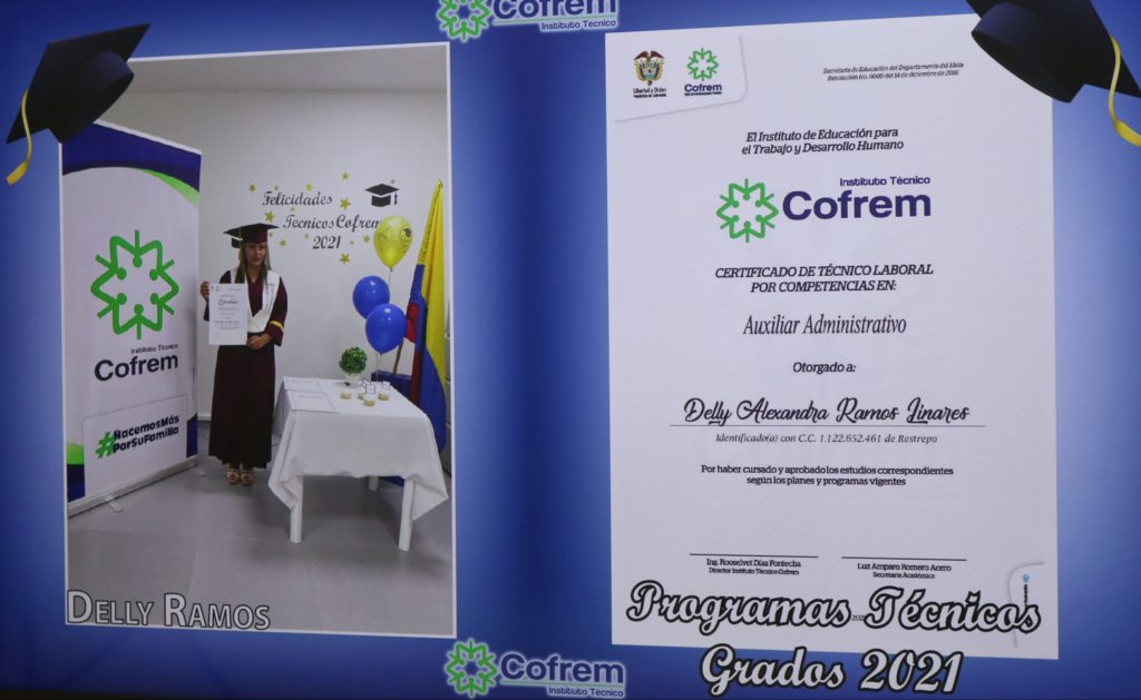 El Instituto Técnico Cofrem graduó en una ceremonia virtual, a 107 estudiantes de sus distintas sedes, que aprobaron la formación ofrecida en los programas técnicos laborales por competencias brindados por la institución de la Caja de Compensación Familiar.