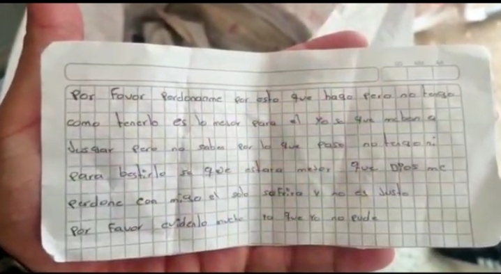 “Por favor perdónenme por esto que hago pero no tengo como tenerlo, es lo mejor para él”, dice una parte de la nota dejada junto con el pequeño. “Sé que me van a juzgar por esto, que Dios me perdone”, se lee en otra parte del papel.